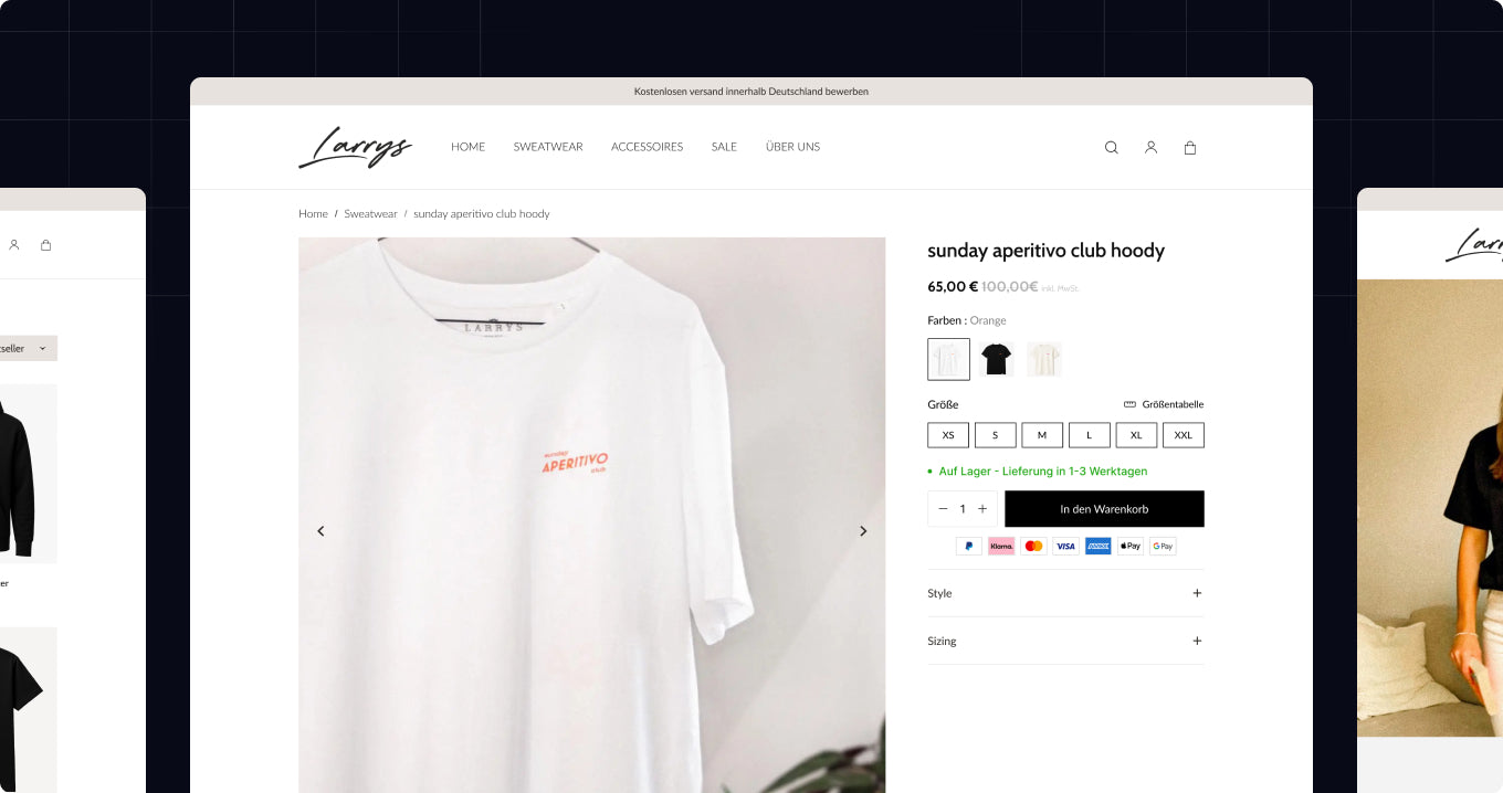 Die Modemarke Larrys 0711 betrieb einen Shop mit Woocommerce. Zwar funktionierte grundsätzlich alles, aber der Aufwand für Pflege und Updates war hoch. Zudem war die Conversion verbesserungswürdig und das System bot keine native Schnittstelle oder Lösung für POS-Verkauf vor Ort (Pop-Ups, Events etc.).